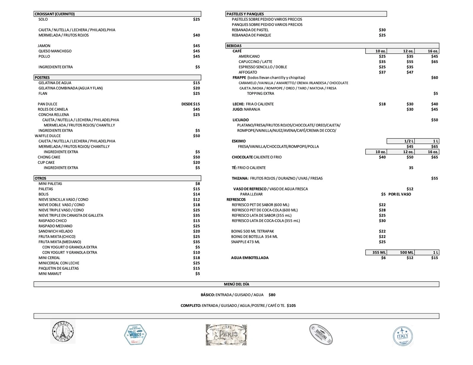 Menú de Bebidas